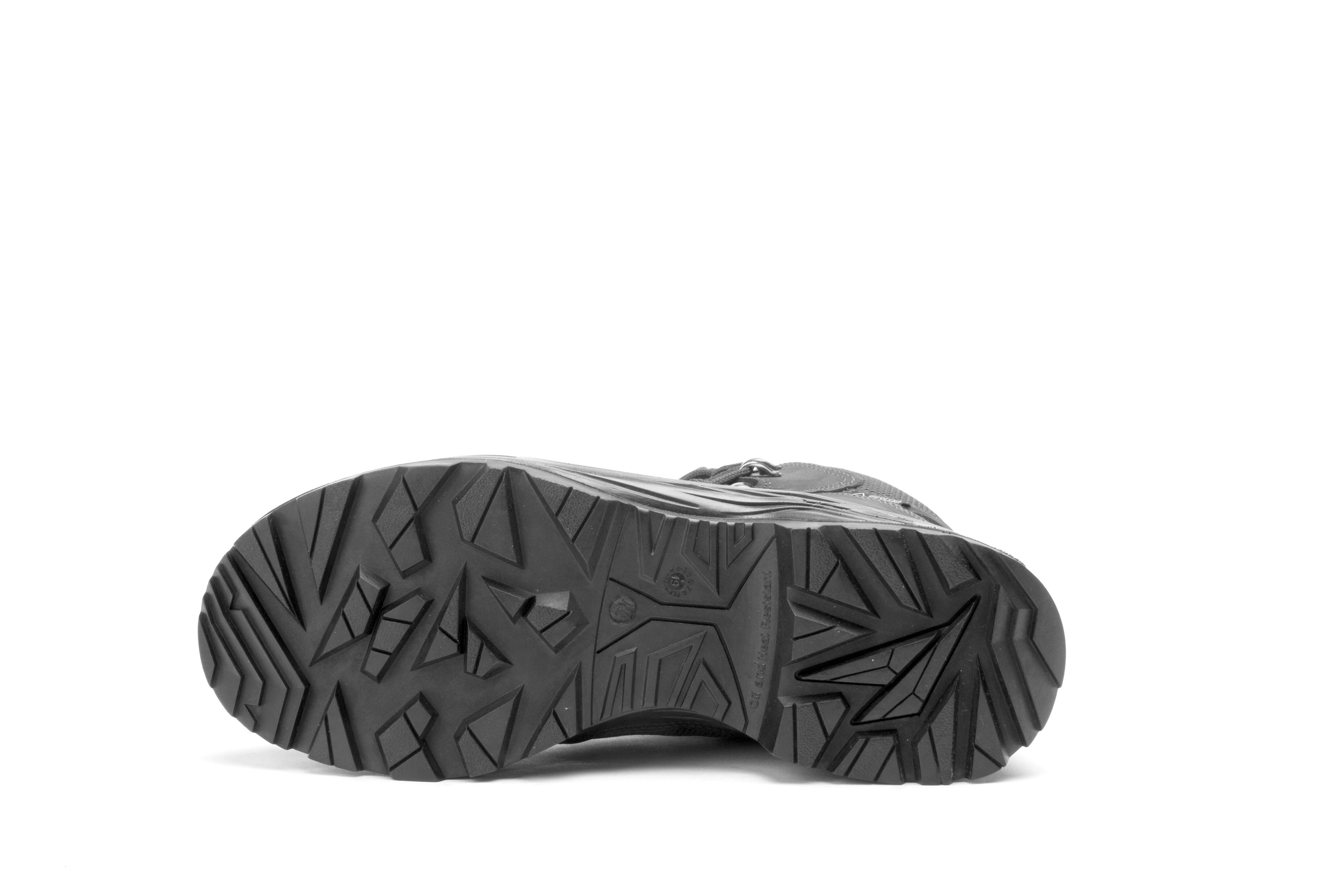 Laufsohle: Selbstreinigende PU-Gummi-Sohle, beständig gegen Öl sowie extreme Hoch- und Tieftemperaturen. Sie gewährleistet Stabilität bei anspruchsvollen Manövern (SR / HRO).
