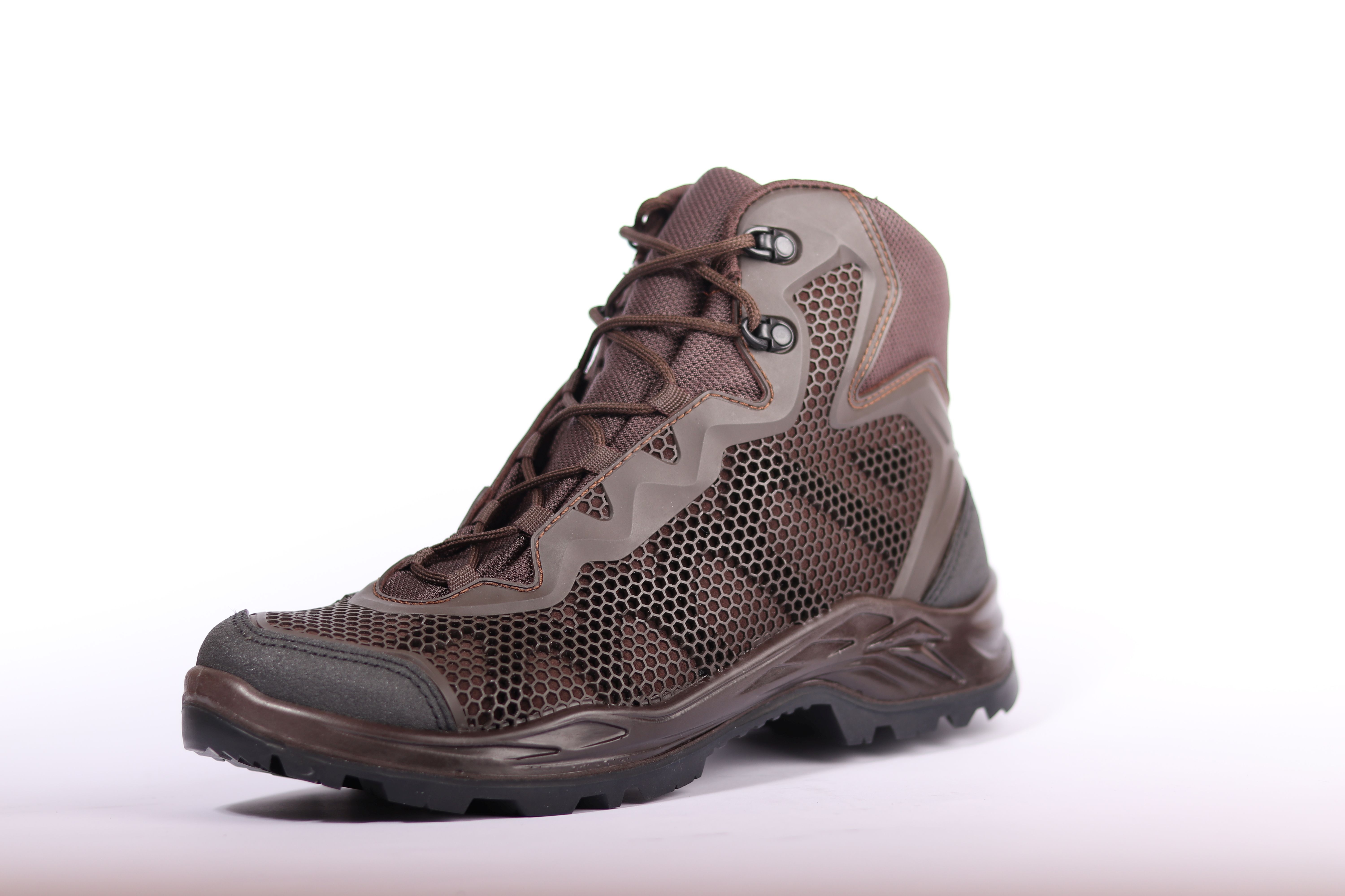 Atmungsaktives Veloursleder kombiniert mit einem Polyurethan-Netzgewebe für zusätzlichen Schutz.
