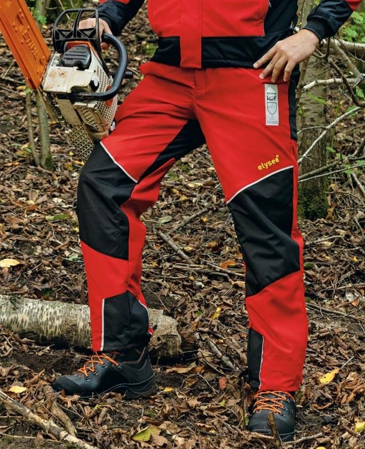 DOUGLASIE Schnittschutzhose in rot/schwarz/gelb