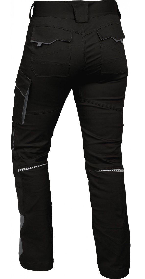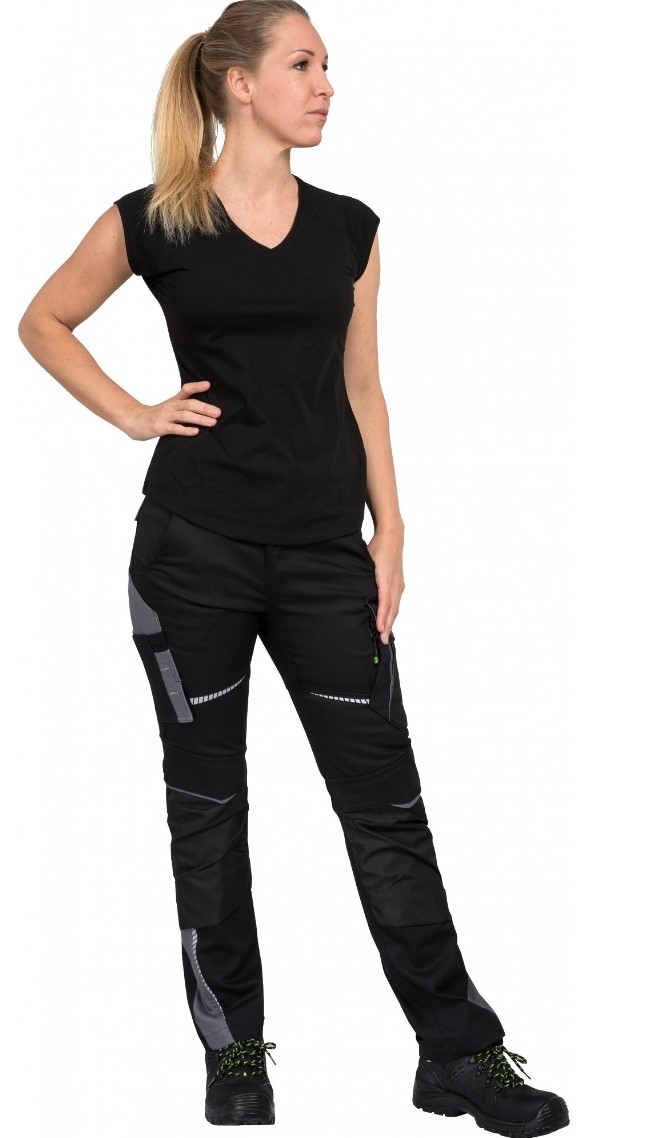 Leibwächter, atmungsaktiver Stretchstoff, femininer Schnitt mit „Shapewear" Funktion durch das breitere Bündchen, 3-Nadel-Steppnähte an beanspruchten Stellen erhöhen die Reißfestigkeit, Reflektoren für gute Sichtbarkeit, Patten mit Klettverschluss, 5 breite Gürtelschlaufen, Hosenschlitz mit Qualitätsreißverschluss, Keil im Schrittbereich erleichtert die Bewegungsabläufe und verhindert das Ausreißen der Nähte, Längsriegel verhindern das Verrutschen des Kniepolsters, bei 60 °C waschfest und trocknergeeignet,Taschen: 2 Eingriffstaschen, 2 Gesäßtaschen mit Zierstepp und Verstärkung, doppelte Maßstabtasche inklusive 4 Stiftfächer am rechten Bein, Cargotasche mit 2 Fächern sowie einer Reißverschluss-Einschubtasche und einer Stifttasche am linken Bein, Volumenknietaschen aus 600D/PU Oxford-Material mit Patte für separate Kniepolster,
