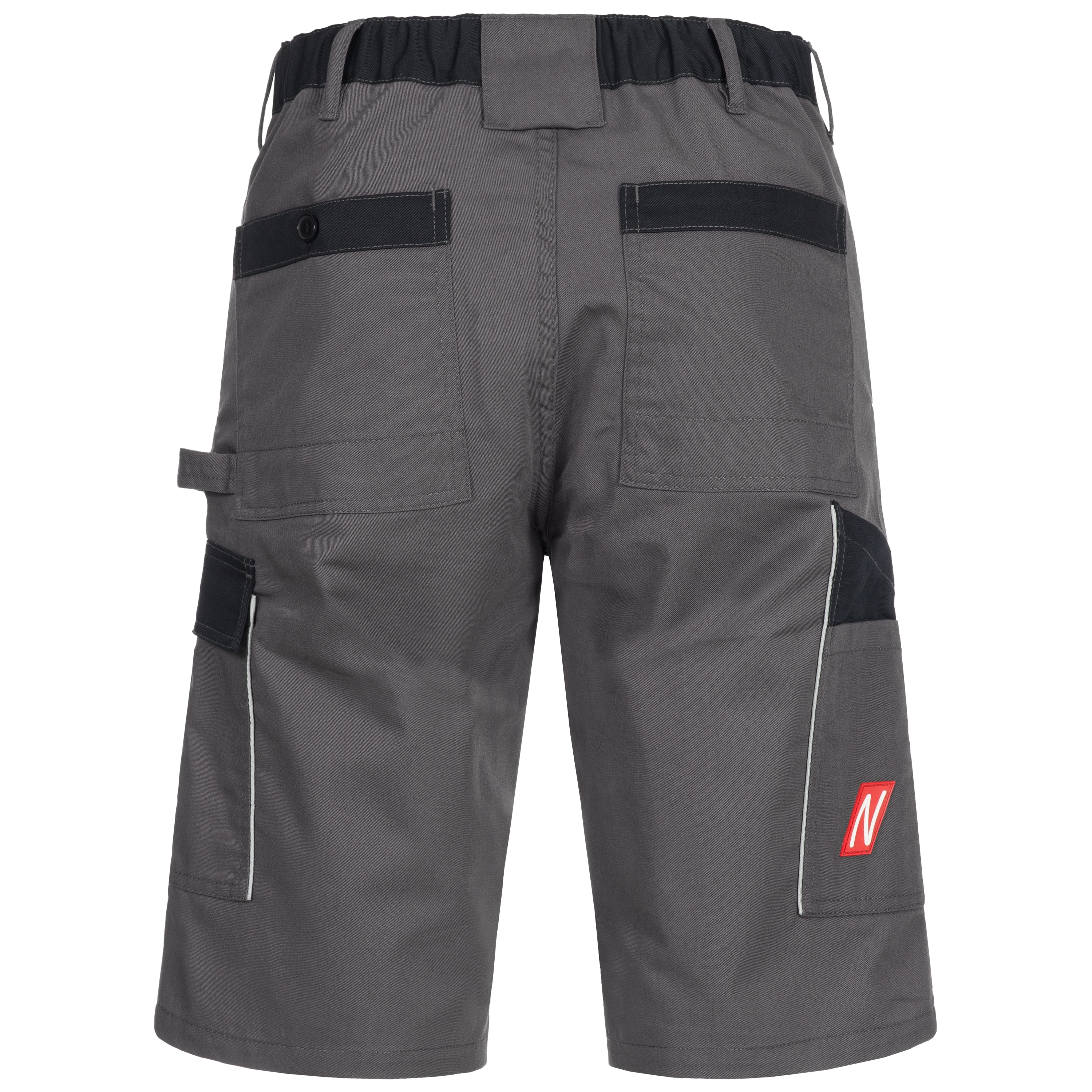 NITRAS MOTION TEX LIGHT, Arbeitshose, kurz, grau / schwarz, 245 g/m2, dehnbarer Bund, verstärkte Gürtelschlaufe auf der Rückseite, Schenkeltasche mit Patte, Hammerschlaufe, Zollstocktasche mit aufgesetzter Tasche, zwei verstärkte Gesäßtaschen, Reflexbiesen an den Seiten, Oeko-Tex Standard 100