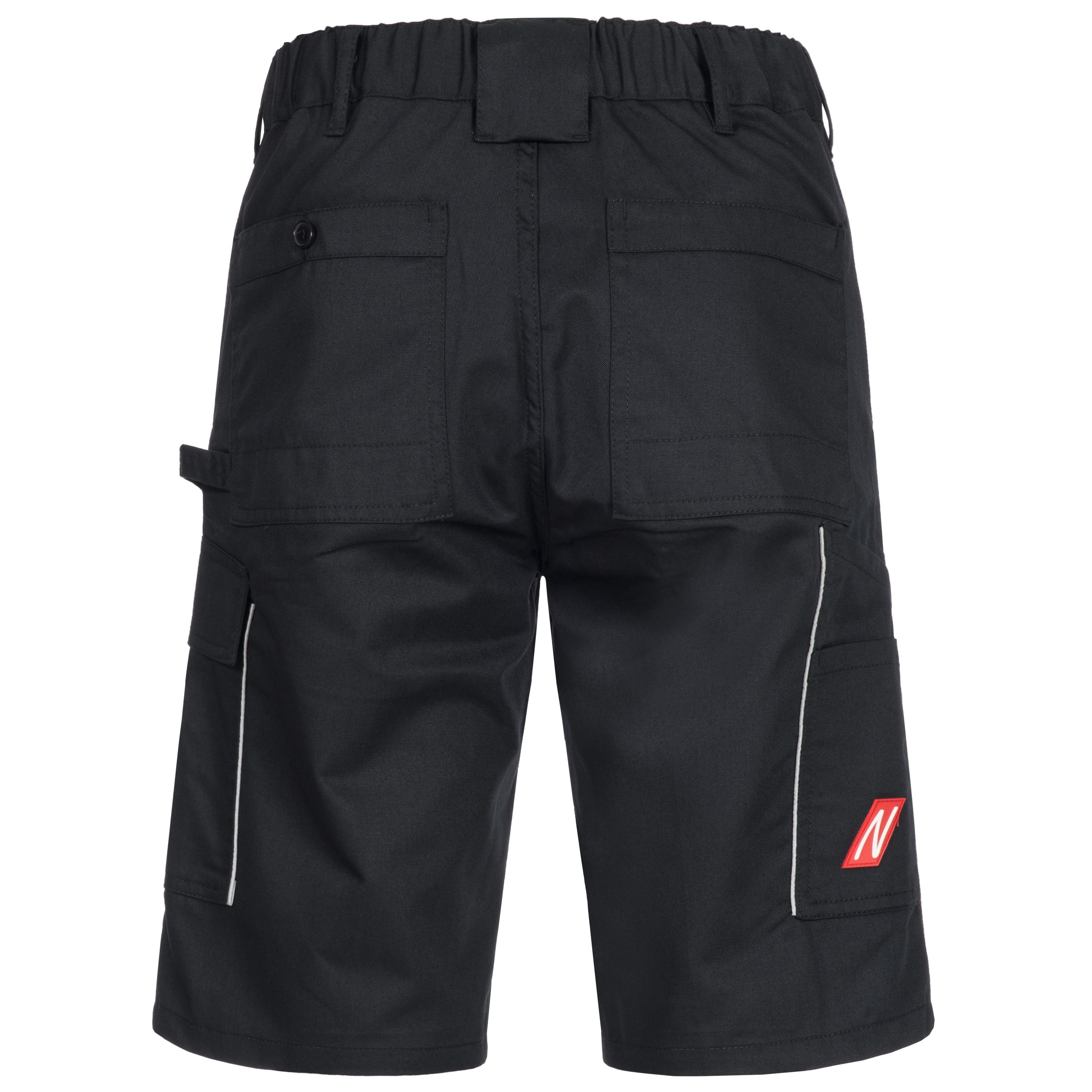 NITRAS MOTION TEX LIGHT, Arbeitshose, kurz, schwarz, 245 g/m2, dehnbarer Bund, verstärkte Gürtelschlaufe auf der Rückseite, Schenkeltasche mit Patte, Hammerschlaufe, Zollstocktasche mit aufgesetzter Tasche, zwei verstärkte Gesäßtaschen, Reflexbiesen an den Seiten, Oeko-Tex Standard 100