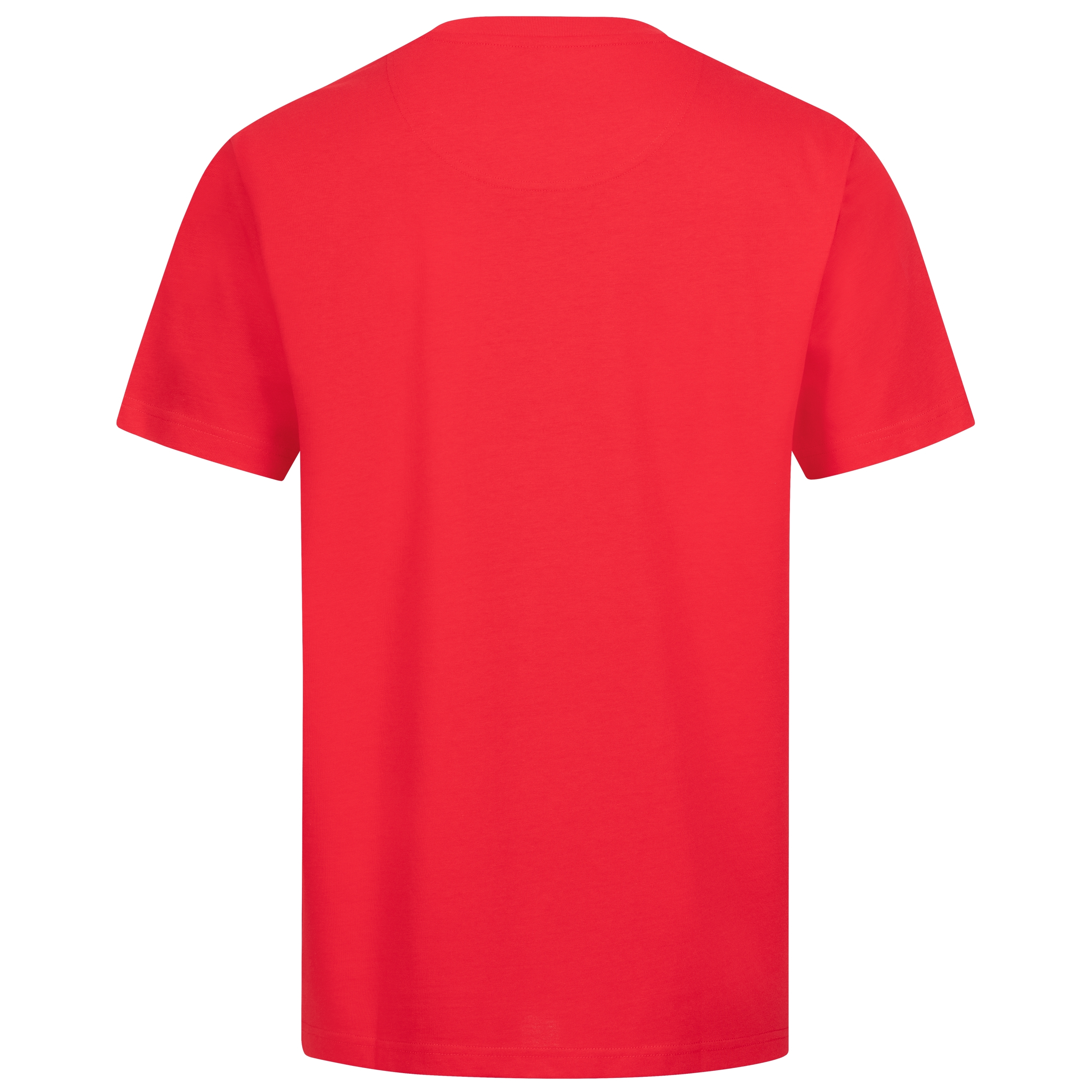 T-Shirt für Herren. Es ist kurzärmelig, rot und wiegt 220 g/m²