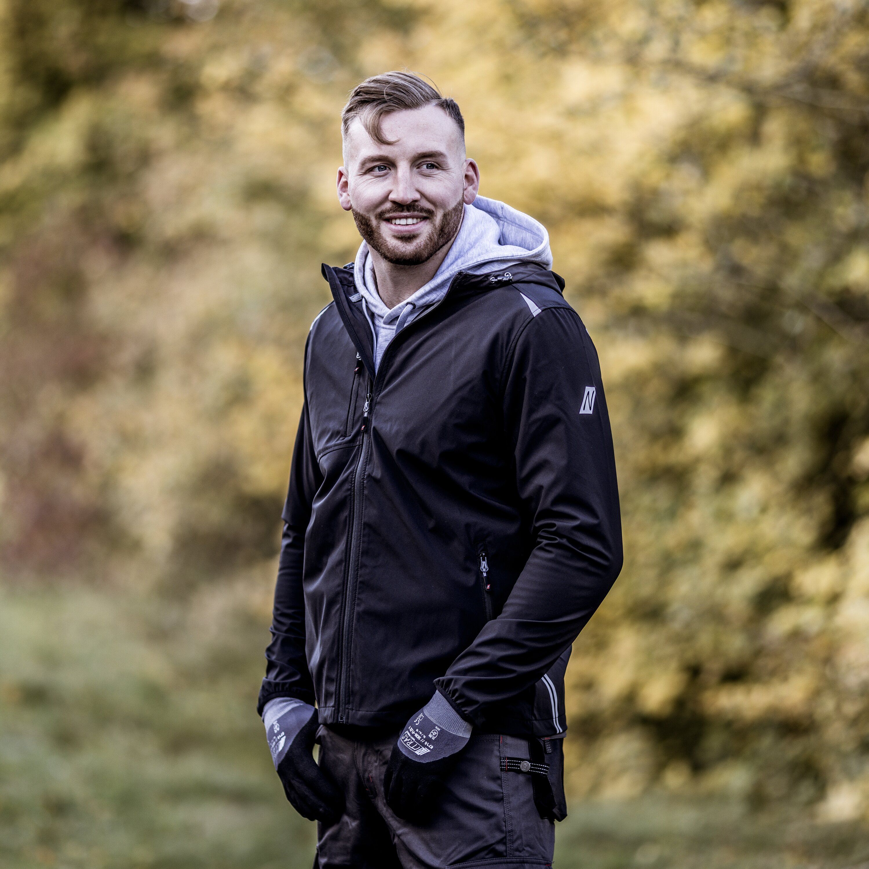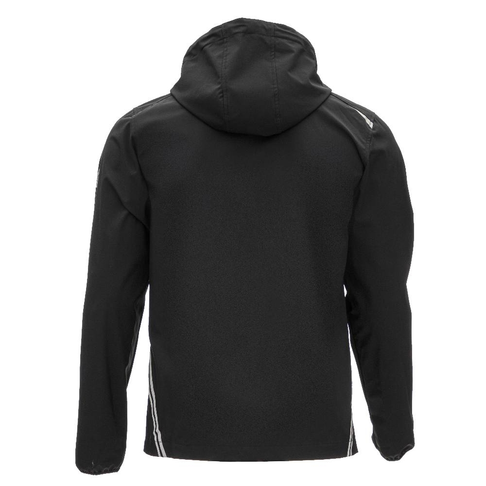 Windbreaker, schwarz mit 180 g/qm, besonders leicht. Angenehmer Tragekomfort dank weichem Softshell-Material mit wasser- und windabweisenden Eigenschaften, Gummizug an den Ärmelabschlüssen für optimalen Sitz, dezentes und sportliches Design, angenehmes Innenfutter (Vorderseite), kleines Packmaß und besonders schnell zur Hand, Reflexelemente für bessere Sichtbarkeit, durchgehender YKK-Reißverschluss mit Kinnschutz und Windstopper innen, Brust- und Seitentaschen, Kapuze mit Kordelzug zur optimalen Fixierung