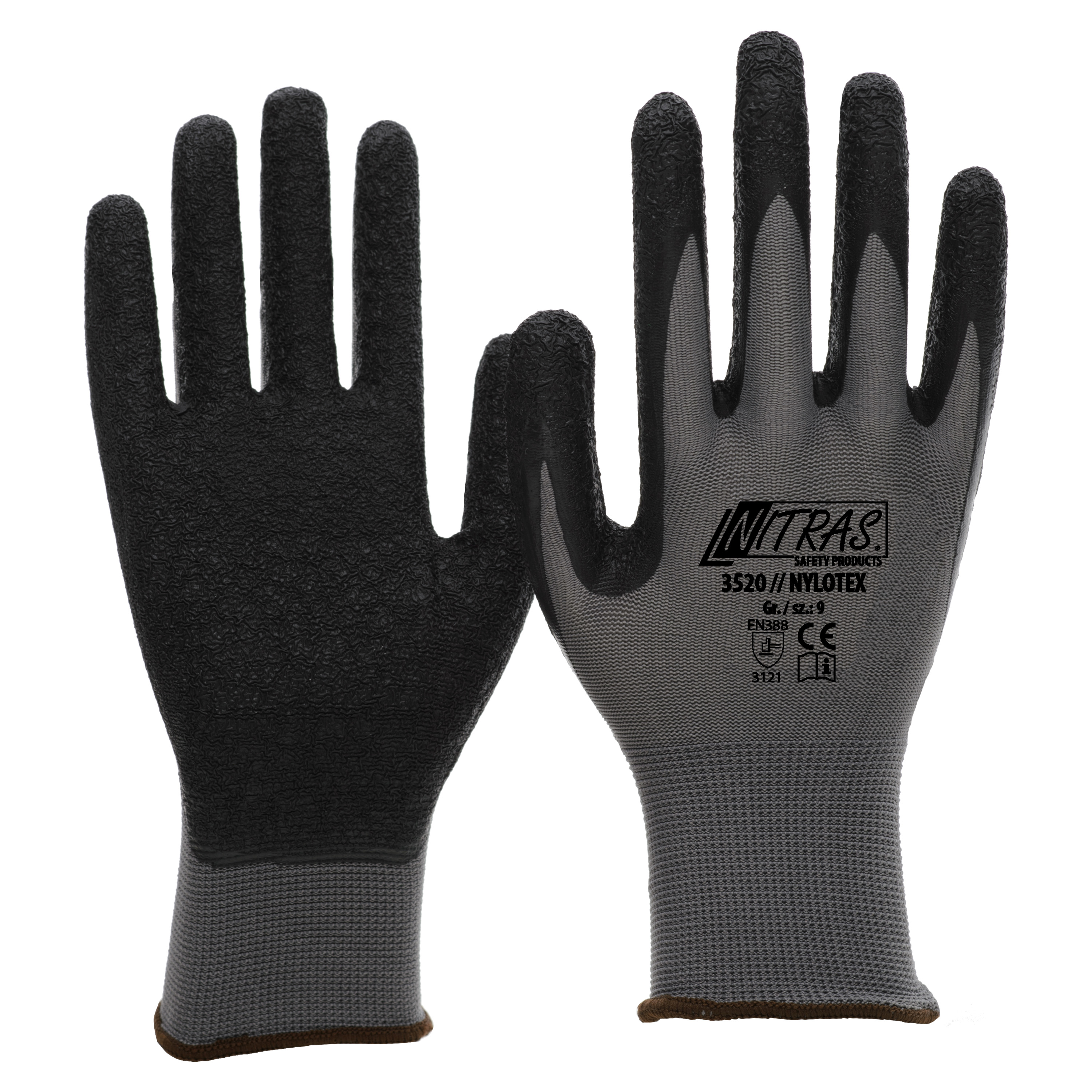 NITRAS NYLOTEX Nylonhandschuhe in grauLatex-Beschichtung in schwarz