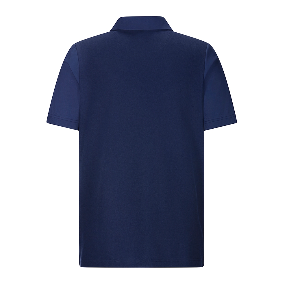 Innovativer Materialmix: Genießen Sie das Beste aus zwei Welten. Der Korpus aus atmungsaktivem Polo-Piqué (70 % Baumwolle) sorgt für ein angenehmes Klima, während die elastischen Einsätze an Ärmeln und Seiten Ihnen die volle Bewegungsfreiheit garantieren.