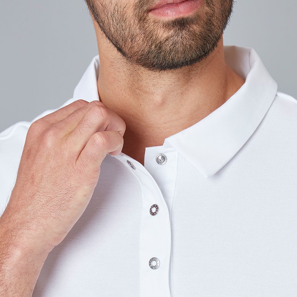 Innovativer Materialmix: Genießen Sie das Beste aus zwei Welten. Der Korpus aus atmungsaktivem Polo-Piqué (70 % Baumwolle) sorgt für ein angenehmes Klima, während die elastischen Einsätze an Ärmeln und Seiten Ihnen die volle Bewegungsfreiheit garantieren.