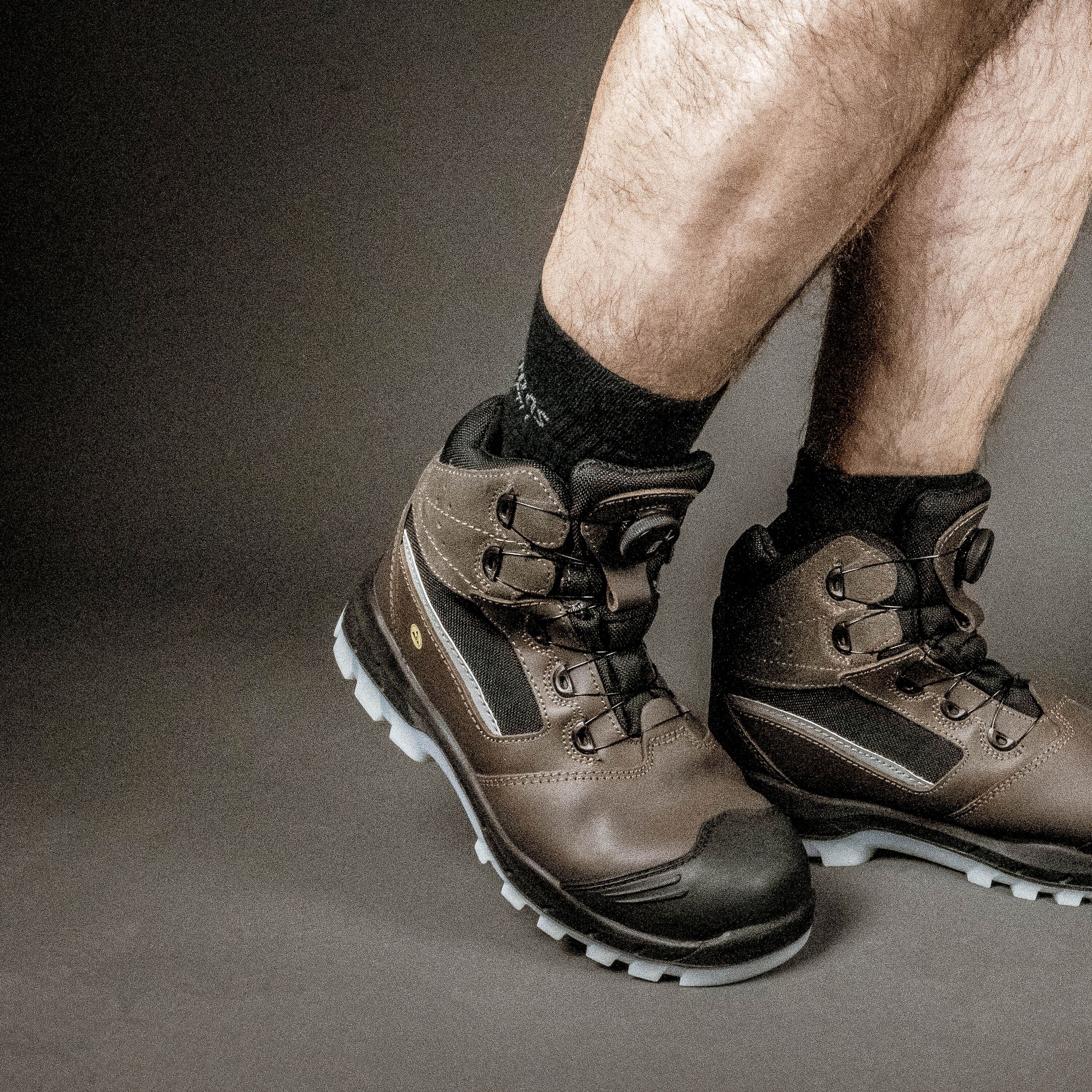 Er verfügt über eine Zehenkappe aus Fiberglas und eine durchstichhemmende Zwischensohle aus Textil, wodurch er komplett metallfrei ist. Die Stiefel sind außerdem ESD-fähig und nach DGUV Regel 112-191-zertifiziert, was das Tragen orthopädischer Einlagen ermöglicht.
