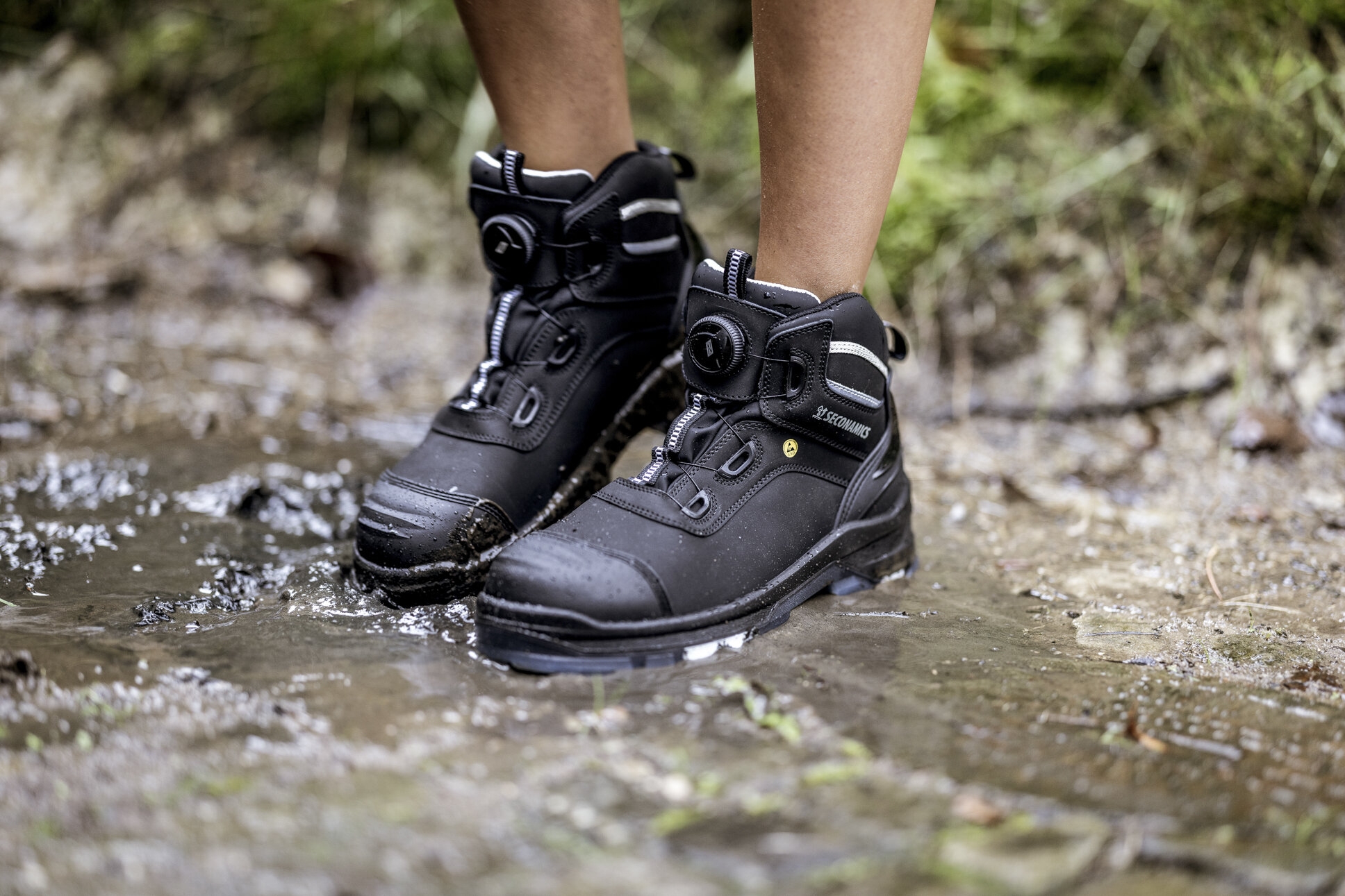 Sicherheitsstiefel, halbhoch, S7S CI FO SC, strapazierfähiges Action Leather, schwarz (Farbcode: 1000), widerstandsfähige PU / TPU- Laufsohle, Zehenkappe aus Fiberglas, durchstichhemmende Zwischensohle aus Textil, metallfrei, hochwertige COMFORT STEP Einlegesohle, ergonomisch geformt, mit Drehverschluss 711 // FIT SYSTEM für schnelle Einsatzfähigkeit und optimalen Halt, wasserdichte und atmungsaktive SECONAMICS Membran, bestmögliche Rutschhemmung (SR), Weite 11, gut gepolsterter Schaft für bestmöglichen Halt und Komfort, Reflexelemente, Fersenfutter für einfaches An- und Ausziehen sowie Fersenverstärkung aus robuster Mikrofaser, zusätzliche Überkappe, TPU-Verstärkung an der Ferse, Premium-Qualität, DGUV Regel 112-191-zertifiziert, ESD-fähig
